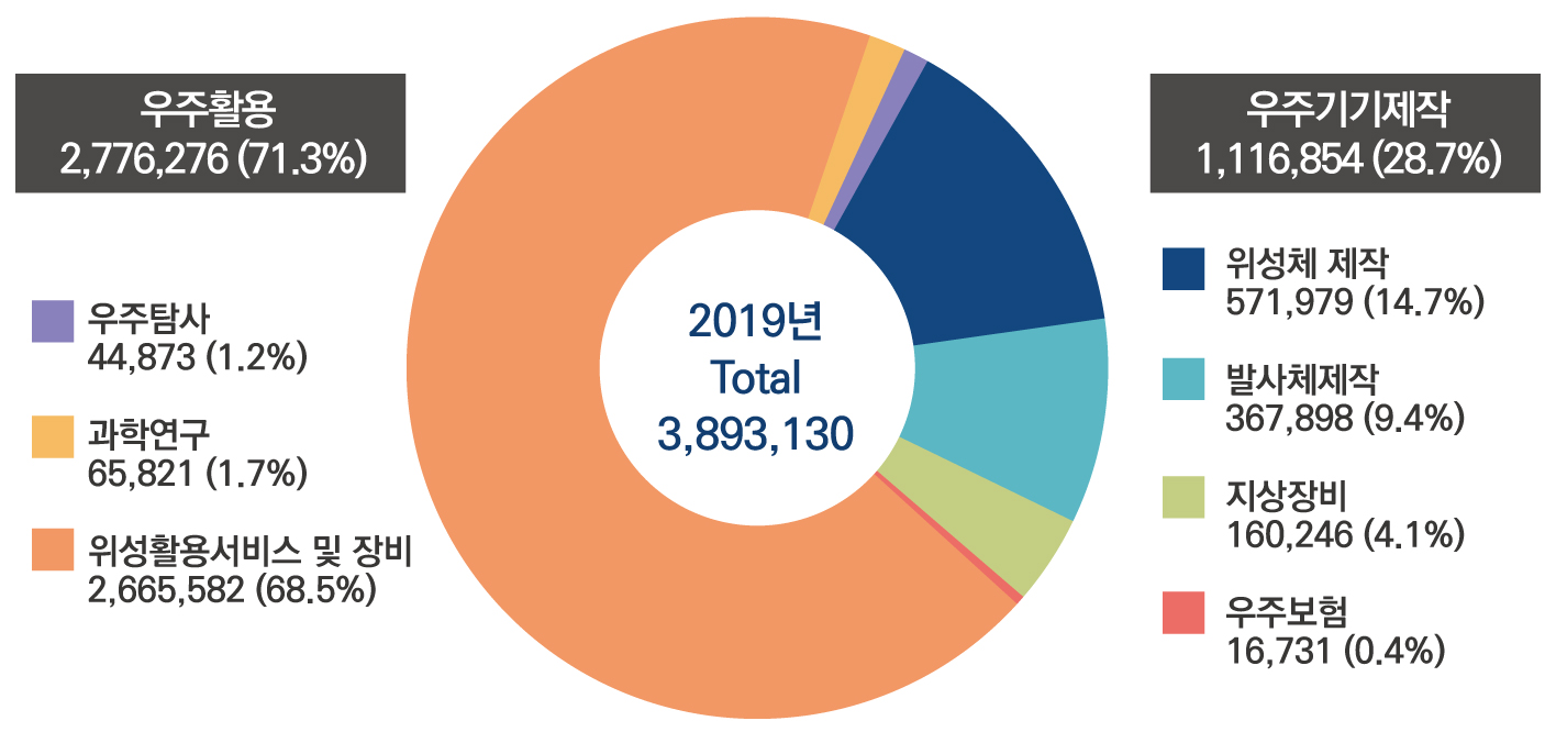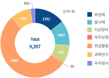 절반 이상의 인력(53.5%)이 위성활용 분야에 종사하고 있음