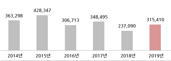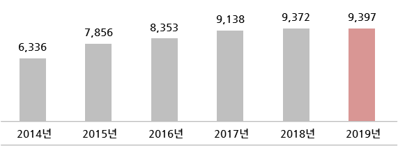 2014년 이후 시설투자비의 급증으로 전년대비 투자금액이 대폭 상승